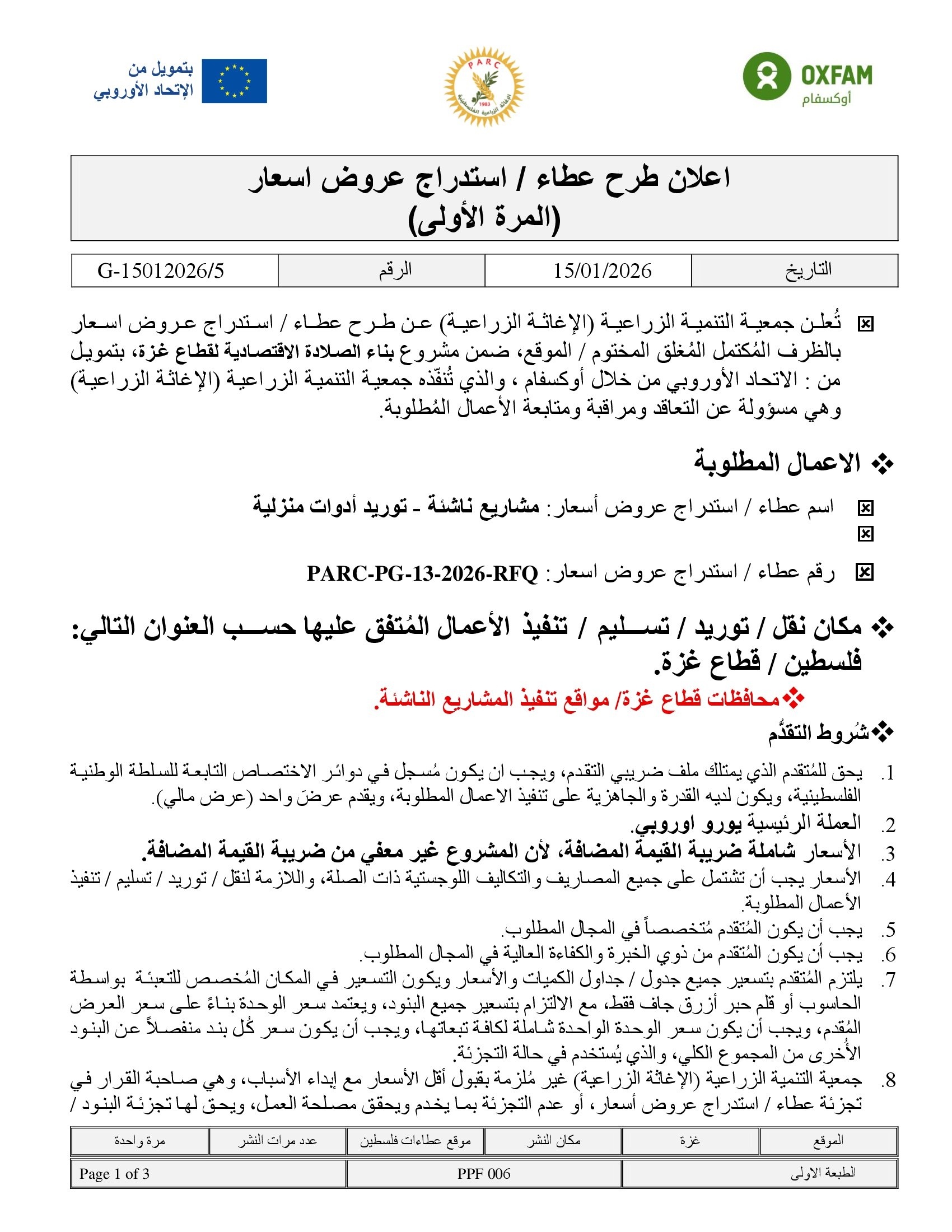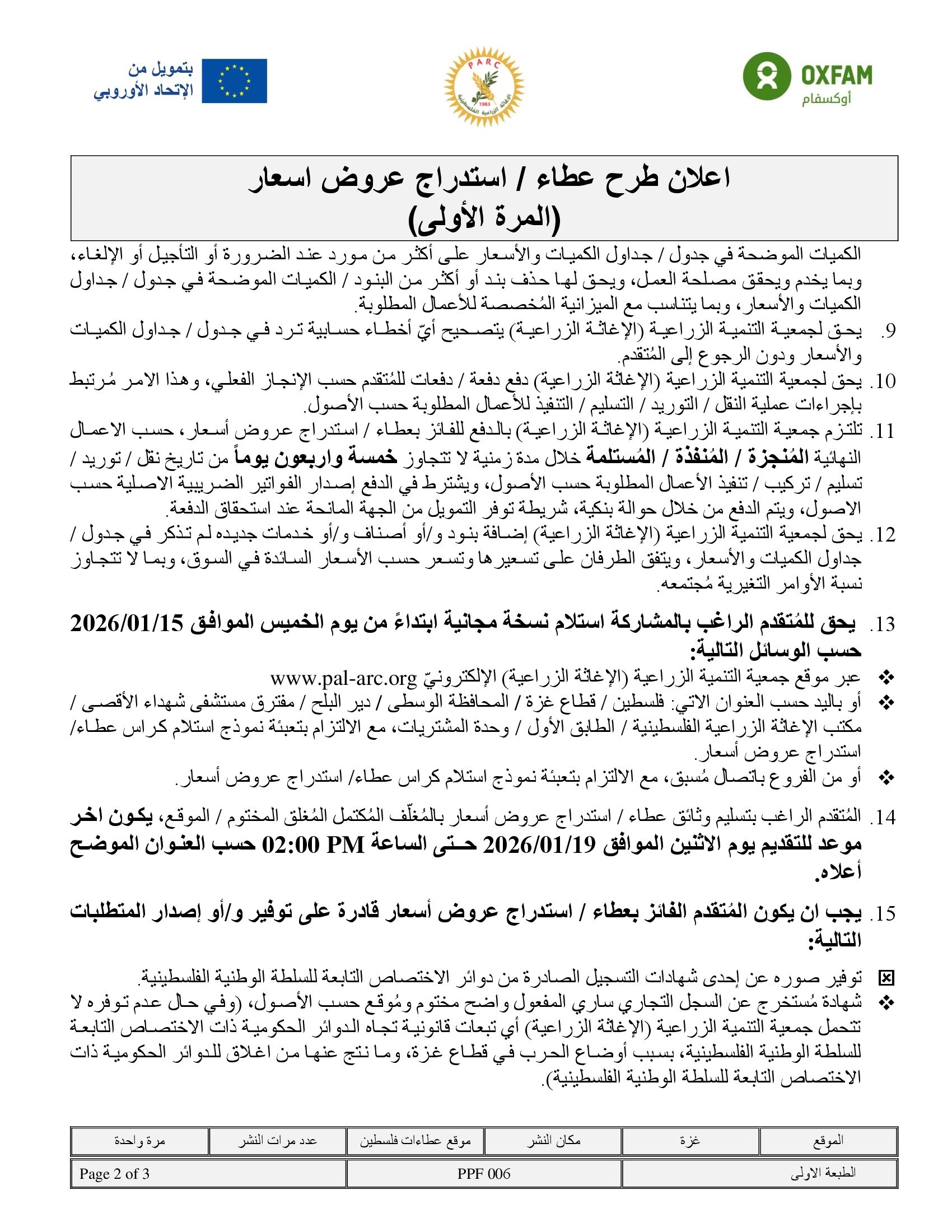 المؤسسة : جمعية التنمية الزراعية موقغ : الموقع الالكتروني بريد : info@pal-arc.org