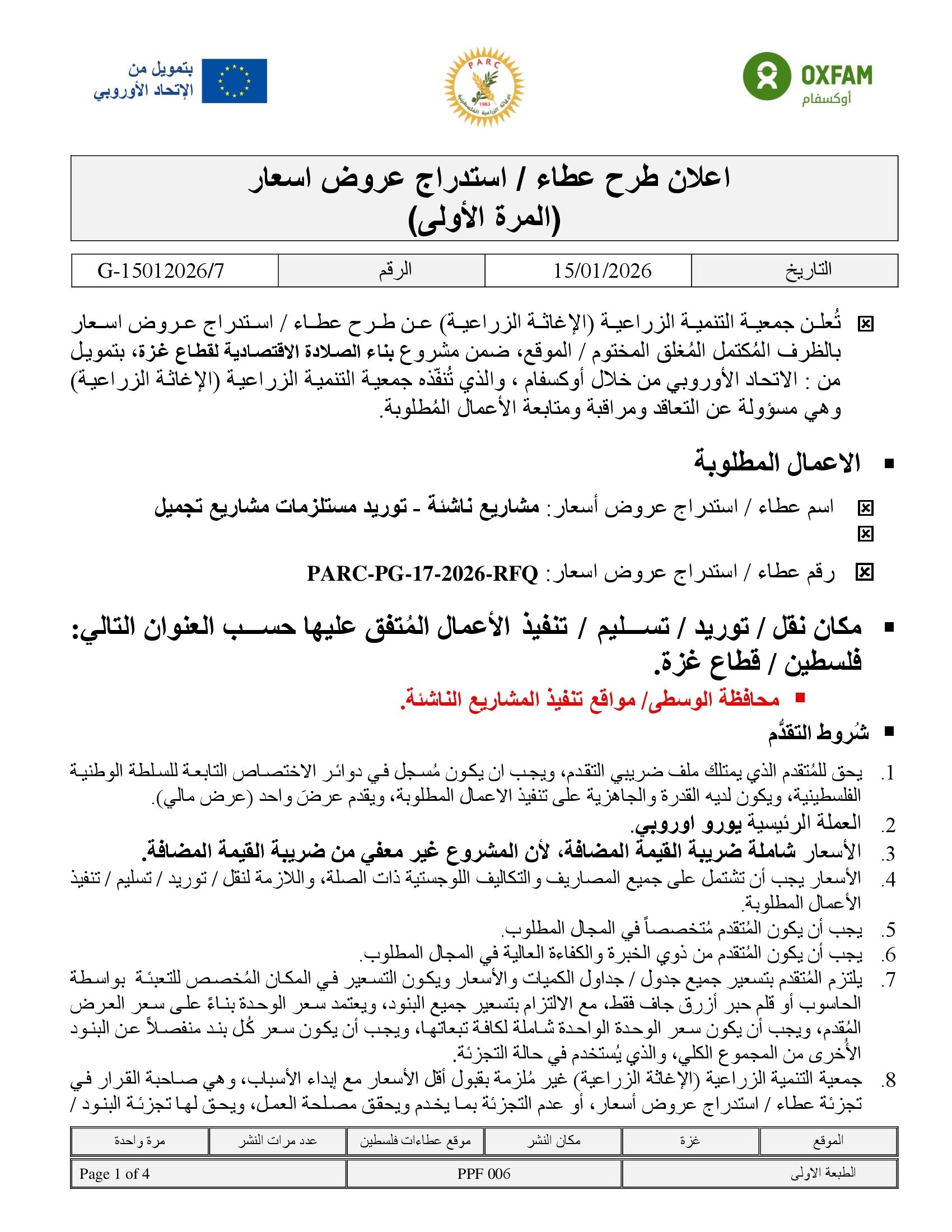 المؤسسة : جمعية التنمية الزراعية موقغ : الموقع الالكتروني بريد : info@pal-arc.org