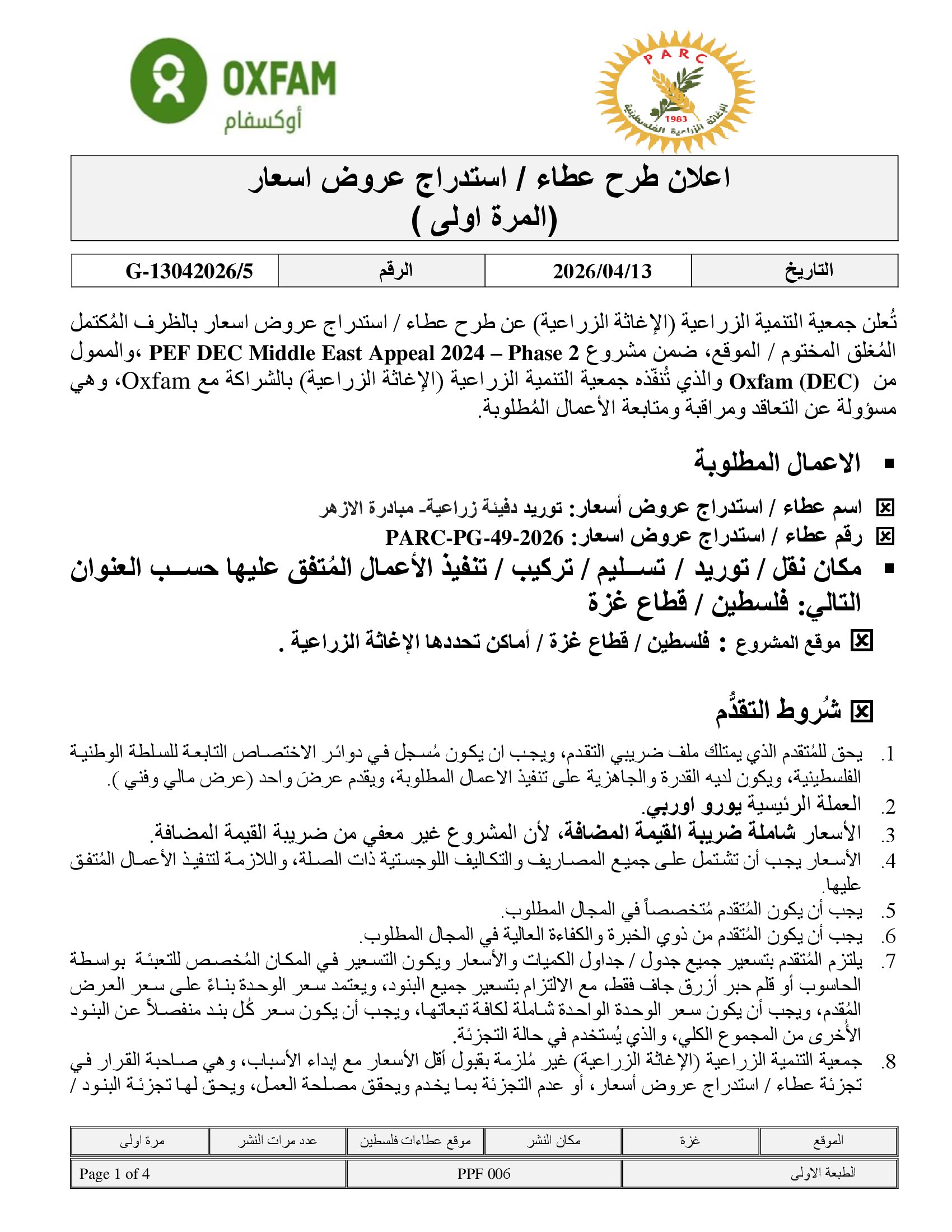 لمزيد من المعلومات و المرفقات عن هذا العطاء اضغط هنا
